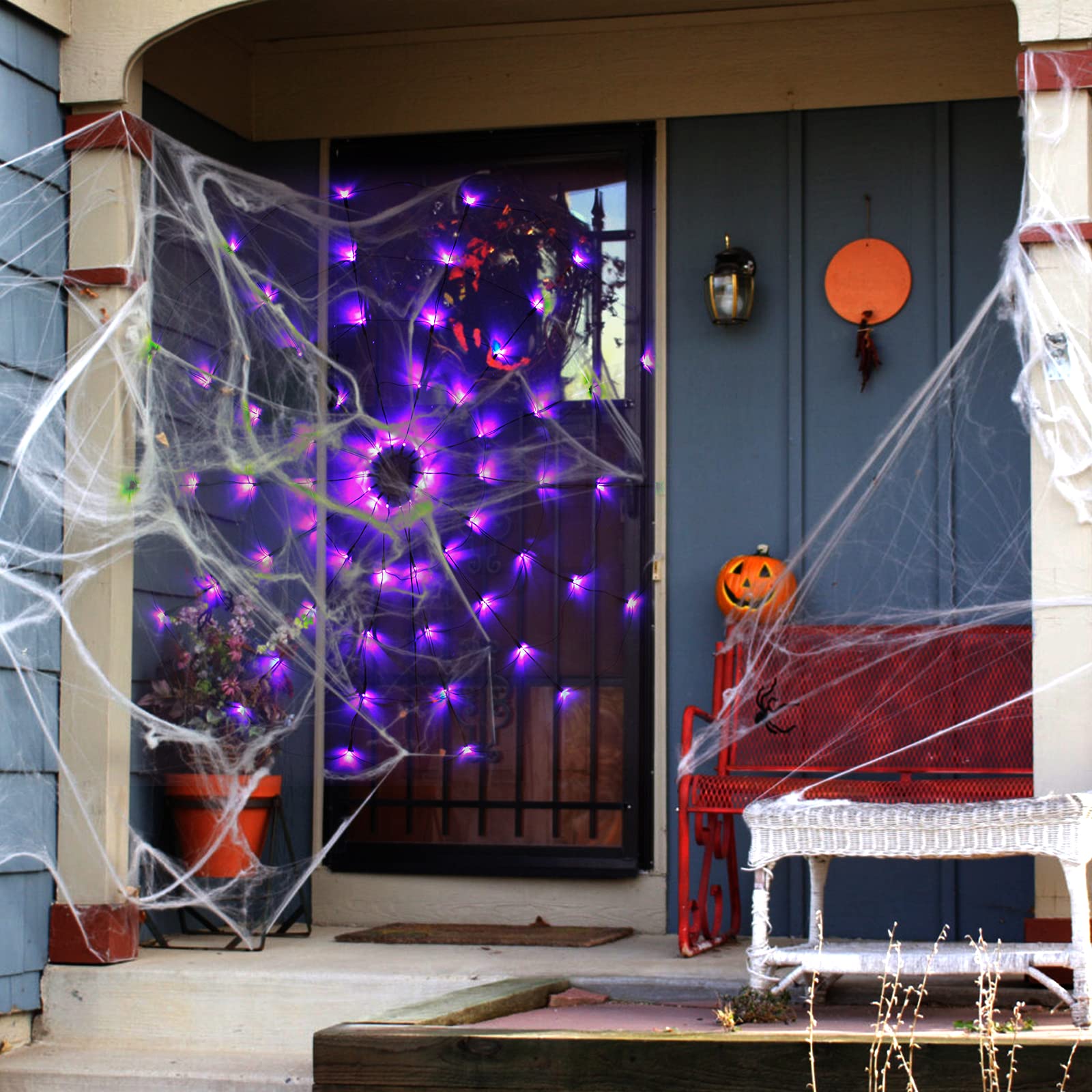 【Classic Upgrade】 Compared with the classic Halloween Spider Web Lights, our Spider Web Light has 70 purple LED lights.