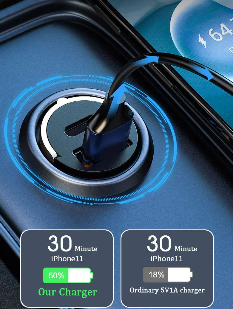 ✅Charging two devices at the same time - The on-board charger can charge two devices at the same time. When charging two devices at the same time, fast charging is supported.