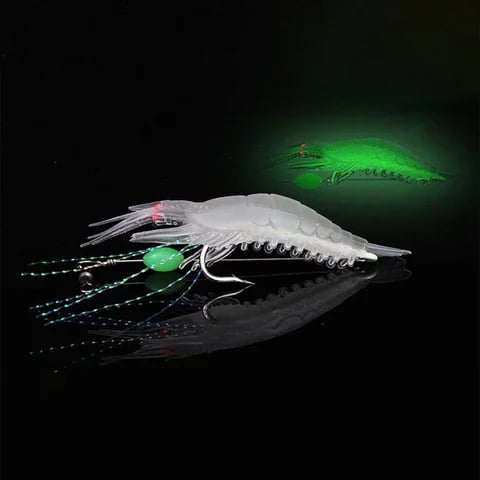 - √ Glow in the Dark - The luminous shrimp lure set is perfect for night fishing, with luminous material on the inner hook.