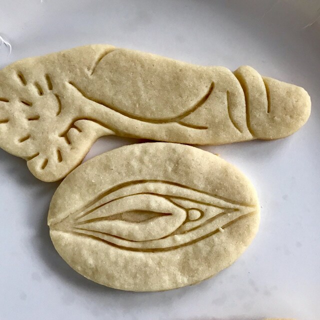 Vulva cookie cutter: 5.8 cm by 8.4 cm (2.2" by 3.3")